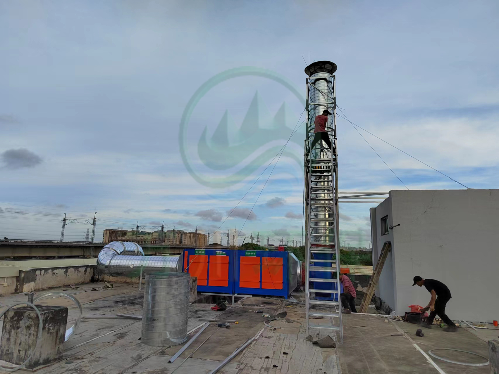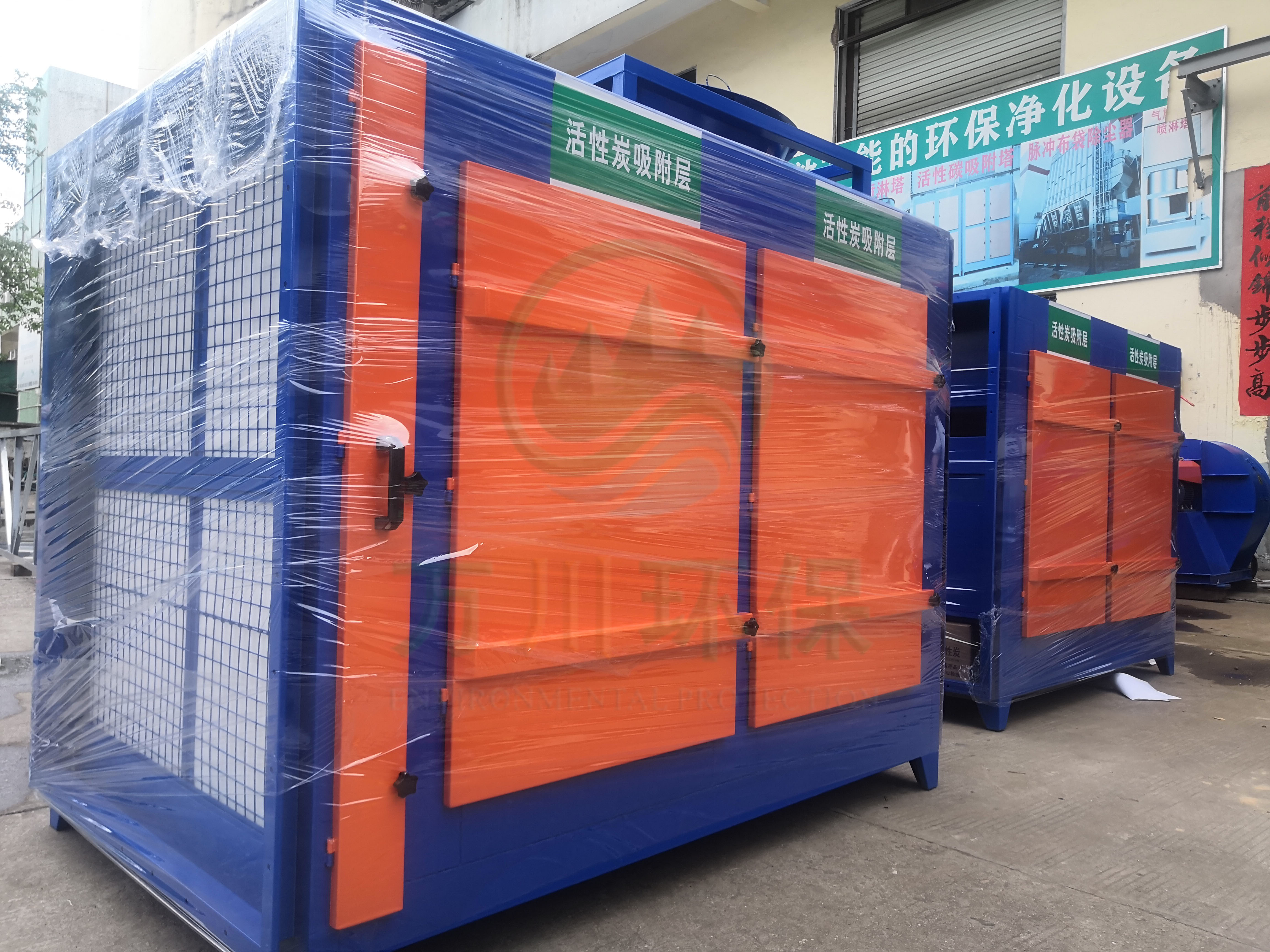 根據(jù)廢氣類(lèi)型和場(chǎng)地需求我們采用兩級(jí)活性炭吸附法對(duì)其進(jìn)行處理。配套兩臺(tái)1萬(wàn)風(fēng)量的碳鋼材質(zhì)活性炭吸附塔與大功率離心風(fēng)機(jī),自帶自動(dòng)化控制系統(tǒng)。