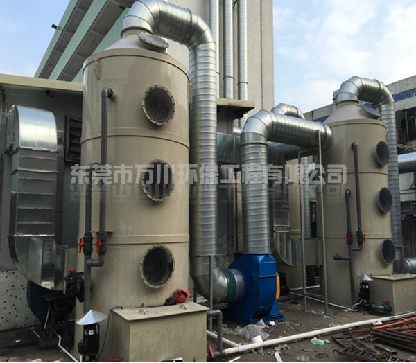 噴淋塔也叫水淋塔,是以水為介質(zhì)處理粉塵。含塵氣體從塔體下方進(jìn)氣口沿切向進(jìn)入噴淋塔,在風(fēng)機(jī)的作用下,迅速充滿進(jìn)氣段空間,然后塔頂位置的噴淋頭向下噴水,水與含塵廢氣接觸,使得空氣和粉塵分離,達(dá)到除塵的效果。噴淋塔具有結(jié)構(gòu)簡單、造價(jià)低、占地面積小、凈化效率高等優(yōu)點(diǎn),能夠處理高溫、高濕的氣流,將著火、爆炸的可能減至最低。經(jīng)治理后,污染物排放達(dá)到標(biāo)準(zhǔn):執(zhí)行《廣東省大氣污染物排放標(biāo)準(zhǔn)》(DB44/27-2001)中第二時(shí)段一級標(biāo)準(zhǔn)。