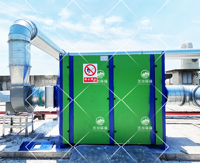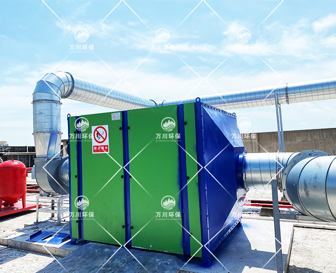 橡膠廢氣從管道進入到設備內,穿過第一層噴淋層,用水沖洗廢氣,再進入到第二、第三層填料層,去除水溶性的粉塵和廢氣,最后進入到活性炭吸附層,利用活性炭的吸附力,吸附有機廢氣,達到凈化的效果。